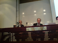 På fredagen, precis innan lunch, var en otroligt intressant diskussion om att använda bloggen i undervisningen och för att sprida läsglädje! Johanna Lindbäck och Liza Greczanik berättade i dialog med varandra om sina erfarenheter kring att blogga. Johanna Lindbäck är lärare och författare till böckerna En liten chock och Min typ brorsa. Hon bloggar också aktivt på bloggen bokhora.se - en blogg om litteratur och läsande. Liza Greczanik är även hon lärare och författare till Bloggen möter undervisningen, ett läromedel om att använda bloggen i undervisningen. Vi fick se flera prov på hur hon och eleverna använder bloggen i olika projekt. Liza Greczanik också en egen blogg, med det härliga namnet språkmakargatan..